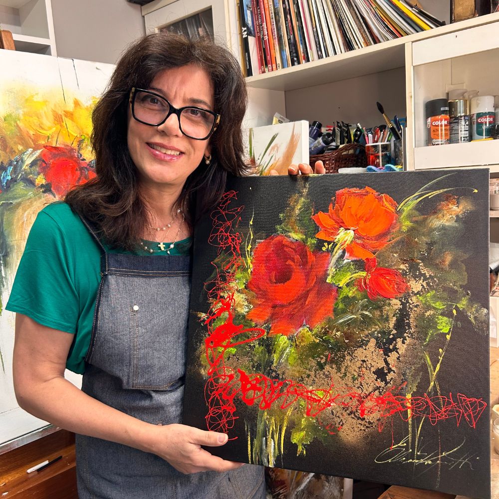Um curso 100% online e gravado para você se tornar um verdadeiro artista, pintar flores comigo e ser reconhecido e admirado pelo seu talento podendo expor e vender suas obras de arte